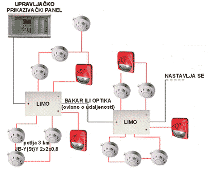 Optički detektor dima Koristi unutrašnju LED i foto-diodu, u slučaju detekcije dima šalje analognu vrijednost centralnoj jedinici preko protokola petlje.